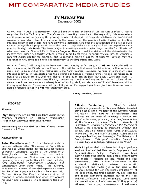 “The big news is the approval of Comparative Media Studies as the first interdisciplinary major at MIT.”